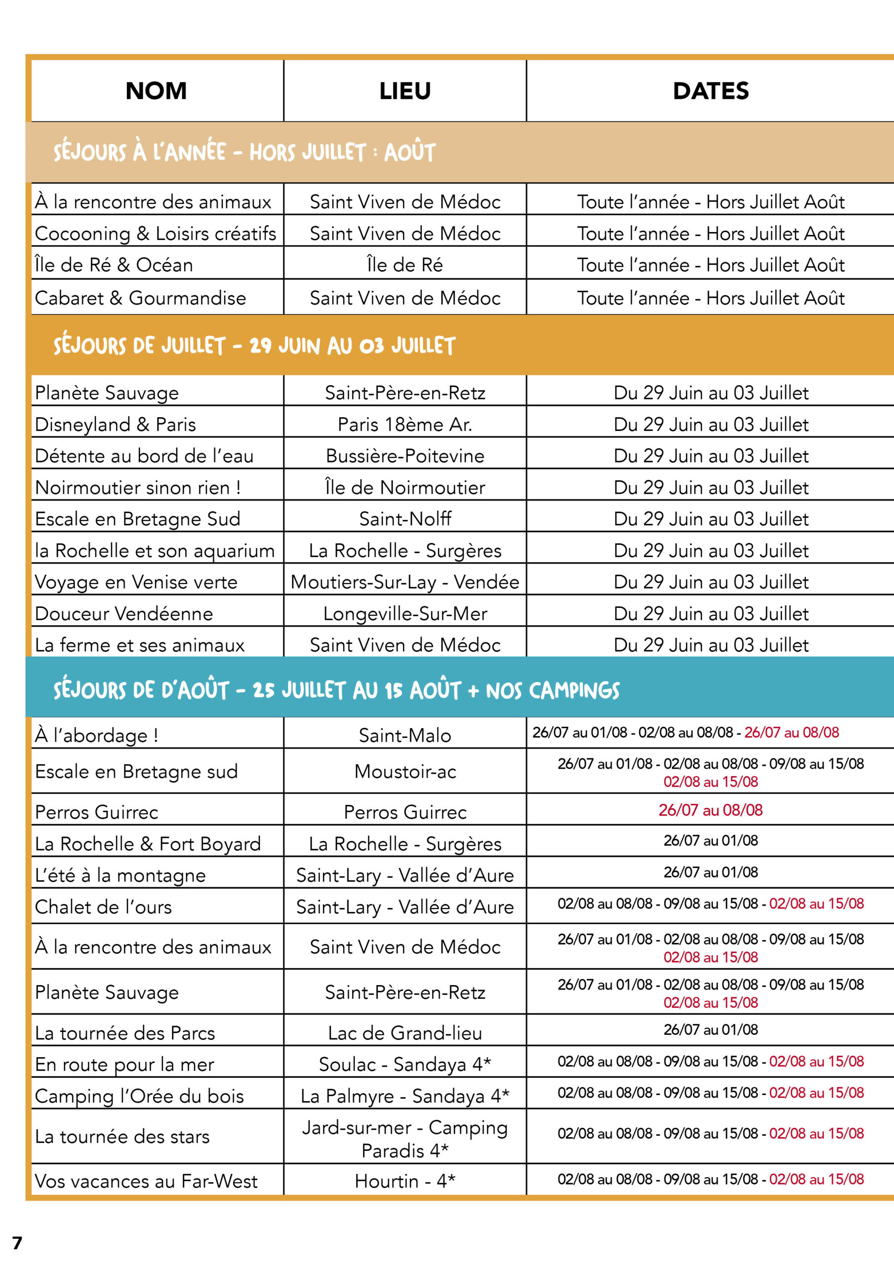 Nous faisons pour des bonnes, moyennes et plus basses autonomies des séjours en France soit en petit groupe toute l’année sur 5 jours, soit des séjours « Spécial été & Hiver » sur 1 semaine ou une quinzaine (Mer, campagne, montagne, parcs à thème, Camping, etc.).