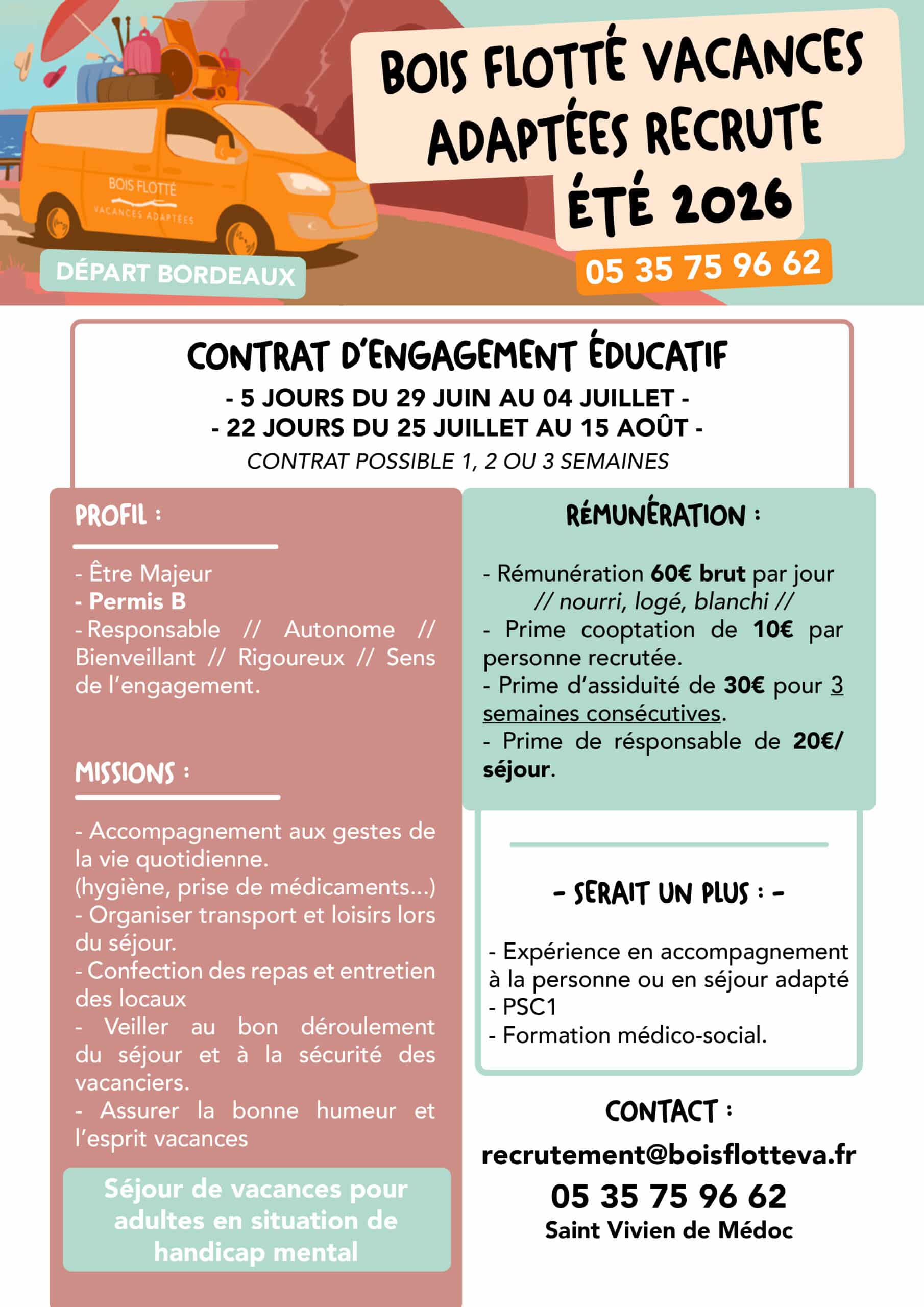Nous recherchons pour nos séjours de vacances adaptés, des accompagnateurs/trices pour nos vacanciers.