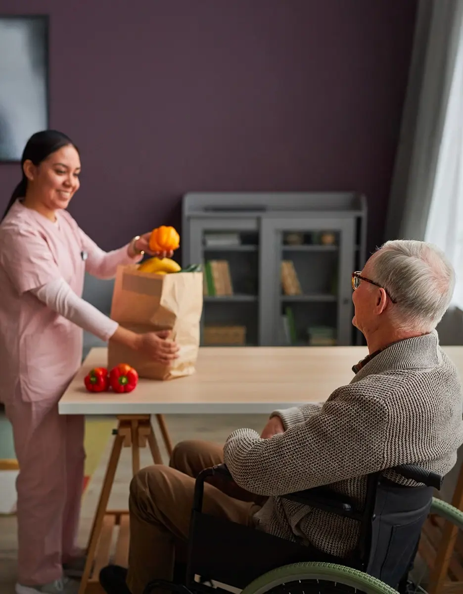 - Aide aux repas : Courses, préparation de repas équilibrés, suivi des régimes spécifiques et aide à la prise de repas.